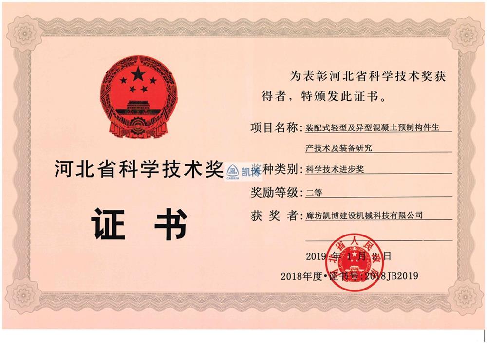 河北省科學技術獎二等獎 裝配式輕型及異型混凝土預制構件生產技術及裝備研究