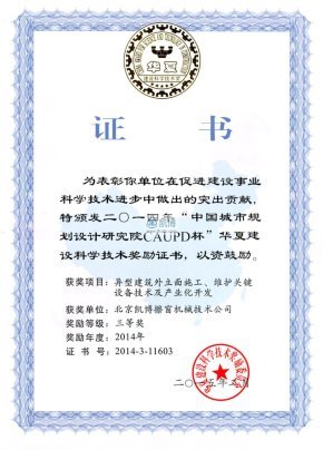 機械工業科學技術獎三等獎 異型高聳建筑主體施工多功能升降機